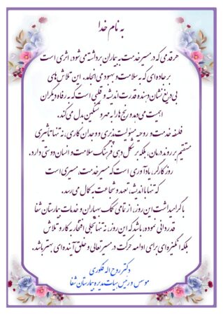 به گزارش روابط عمومی بیمارستان شفا، موسس و رئیس هیات مدیره بیمارستان شفا، دکتر روح اله فکوری طی پیامی روز کارگر را تبریک گفت.